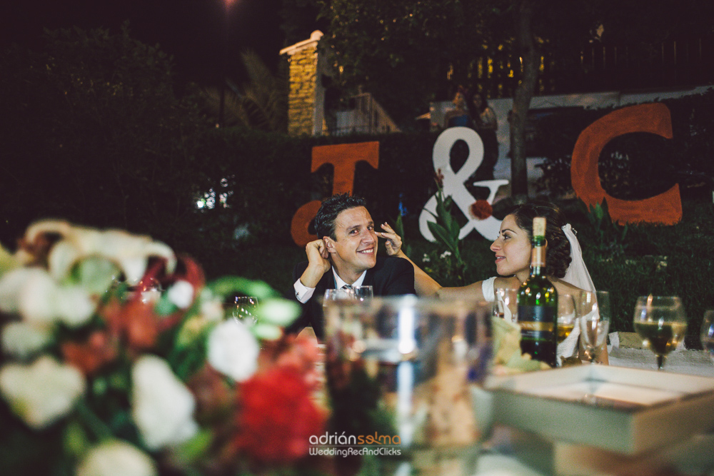 Uno de los pueblos más bonitos de Andalucía, Ronda y la iglesia de Santa Cecilia, sería el lugar elegido para el ‘sí quiero’. No menos bonito iba a ser el banquete, la pareja escogió un rincón precioso, ‘El Huertecillo’ de Arriate, un conjunto de casas rurales llenas de vegetación y rodeadas por un pequeño riachuelo. Un lugar rústico, precioso, totalmente construido por sus dueños, Antonio y Valentín, dos hermanos que nos acogieron y enseñaron orgullosos todos los detalles de aquel rincón. Una cena al aire libre preparada por nuestros amigos de Santa Brígida, exquisita, llena de regalos, de detalles, de agradecimientos que emocionaron a muchos de los presentes, incluido Jonatan, que se presentaba duro pero al final dejó asomar unas lagrimillas.